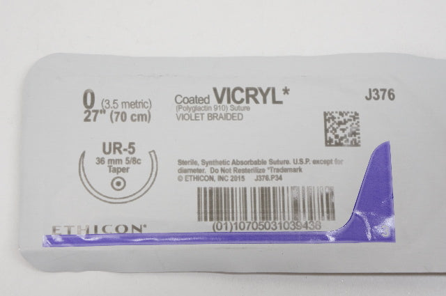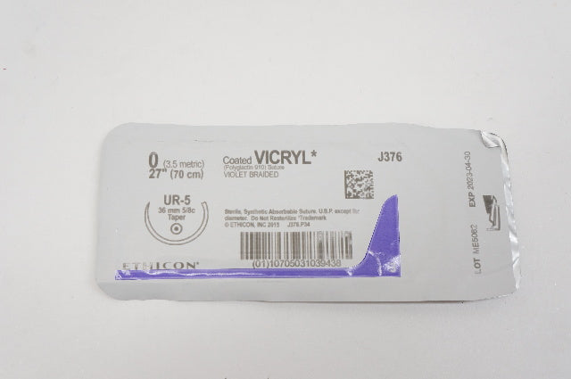 Ethicon J376 0 VICRYL, UR-5, 36mm 5/8c Taper, 27inch