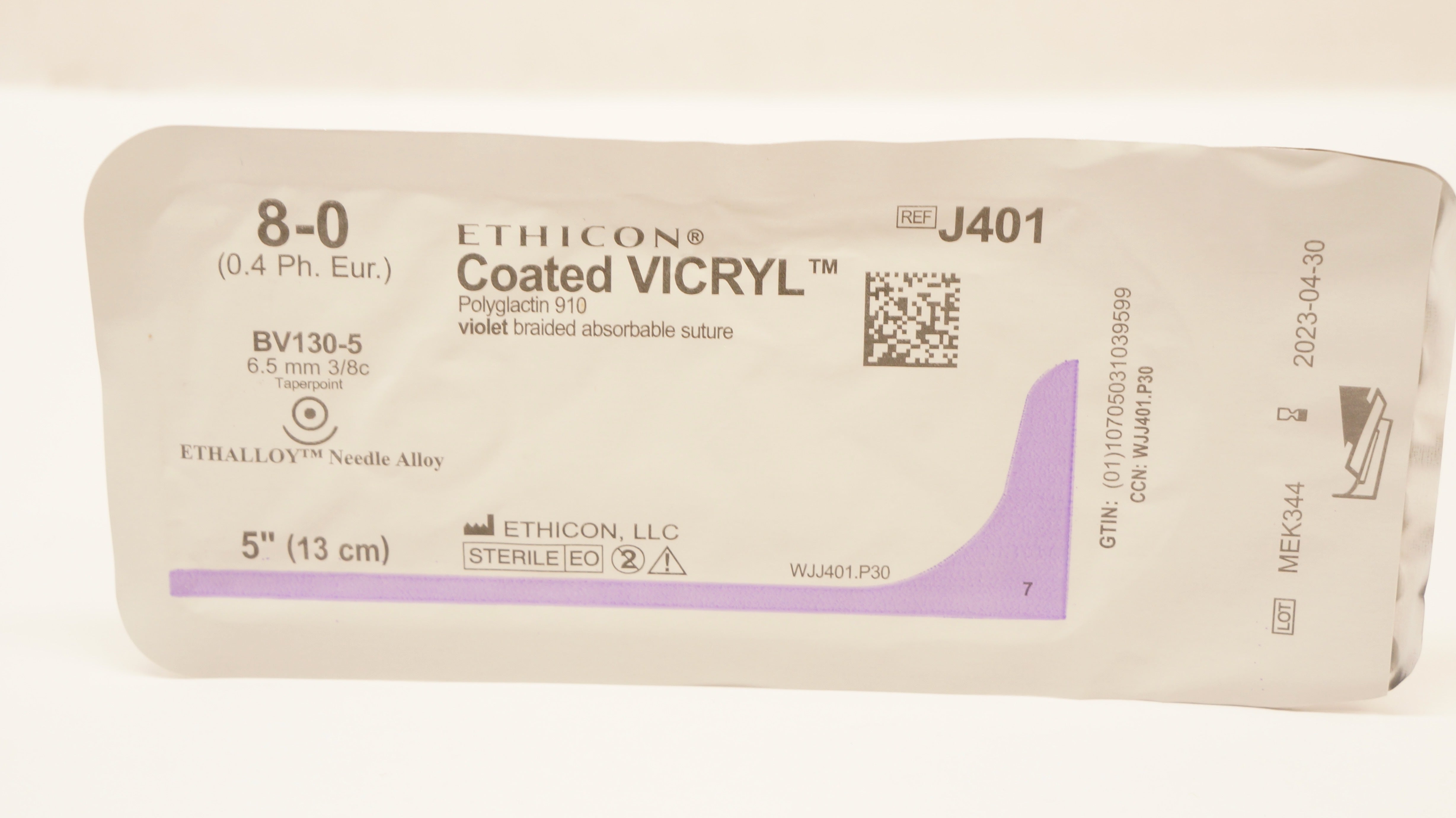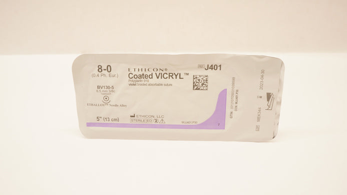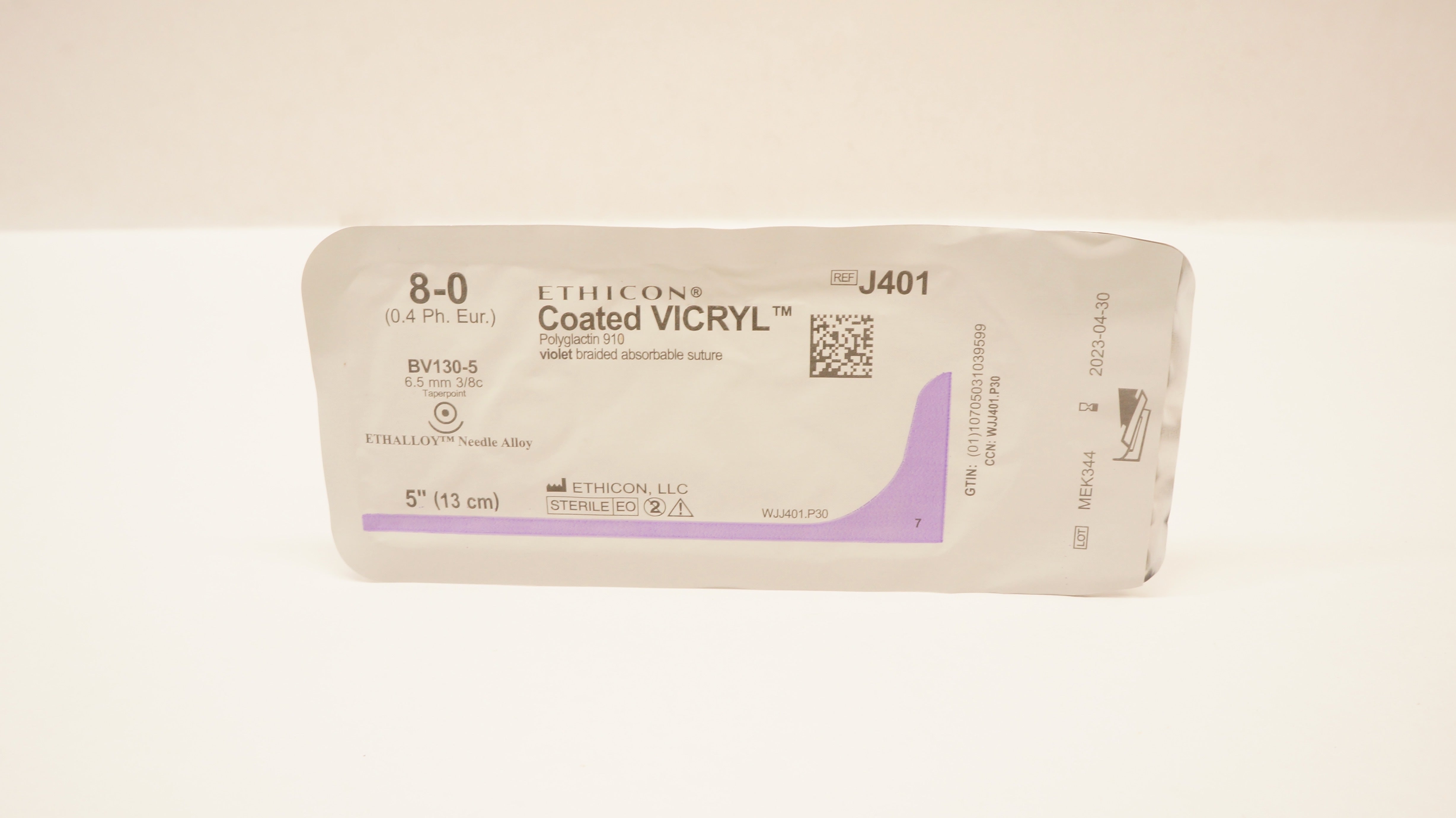 Ethicon J401 8-0 Coated VICRYL Polyglactin 910 Violet Braided Absorbable Suture BV130-5 6.5mm 3/8c Taperpoint, 5inch