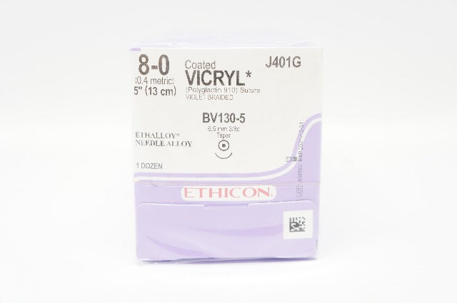 - Ethicon J401G 8-0 VICRYL, BV130-5, 6.5mm 3/8c Taper, 5inch (x) - Box of 12