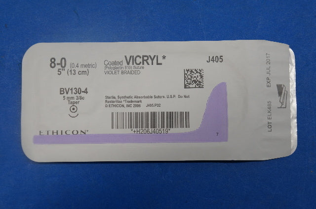 Ethicon J405 8-0 VICRYL, BV130-4 5mm 3/8c Taper, Violet Braided, 5
