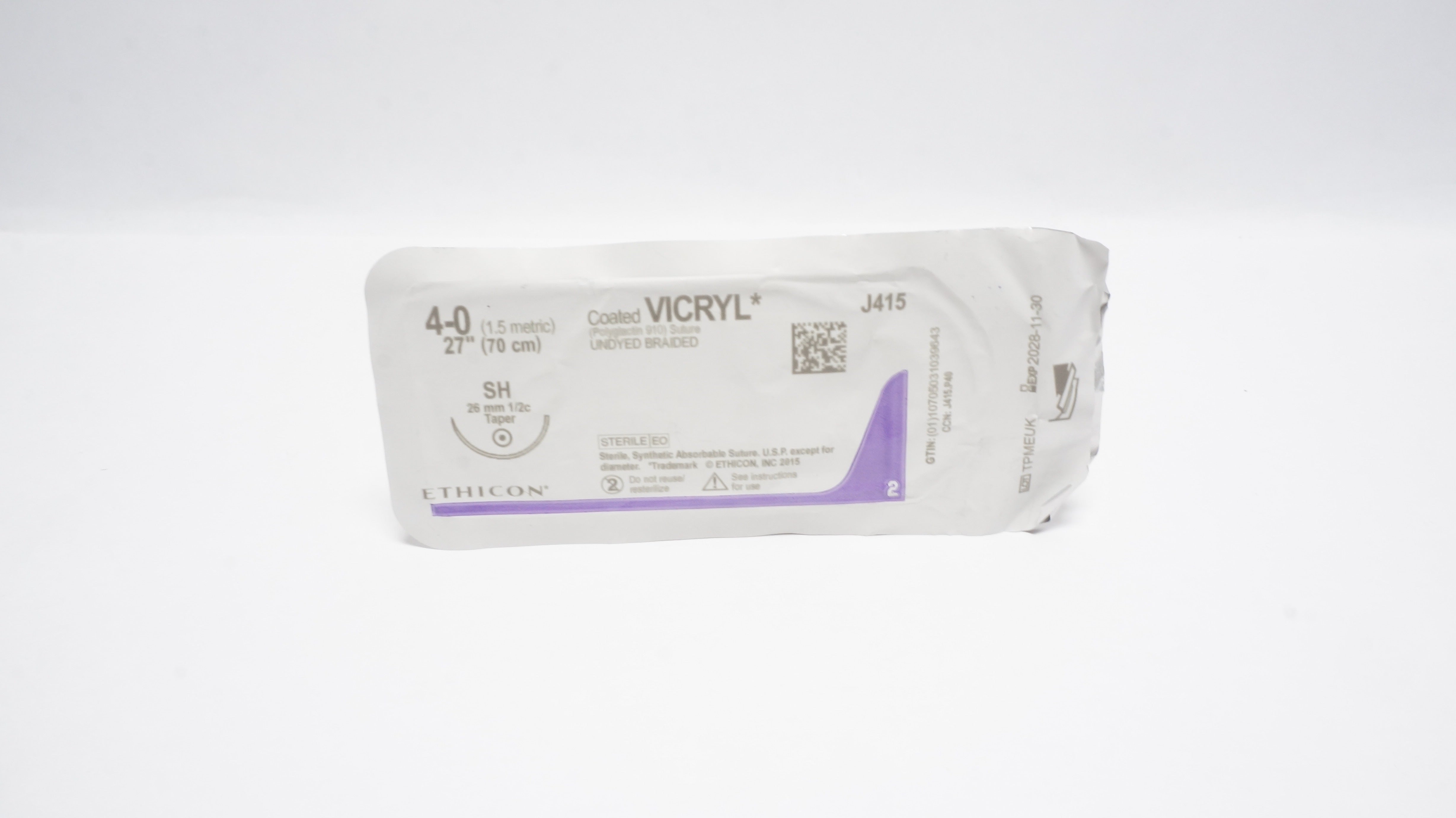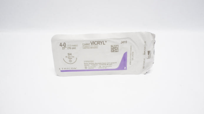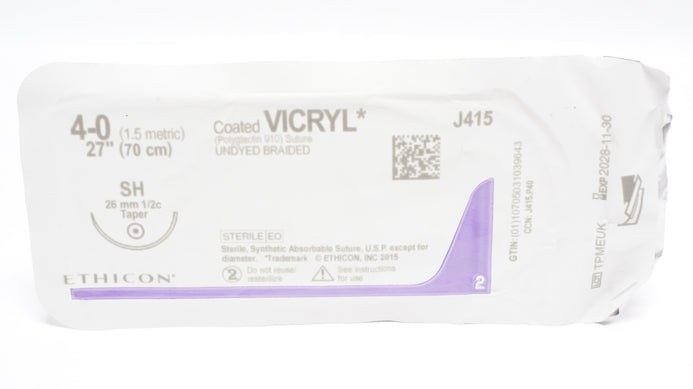 - Ethicon J415 4-0 Coated VICRYL Polyglactin Stre SH 26mm 1/2c Taper, 27inch