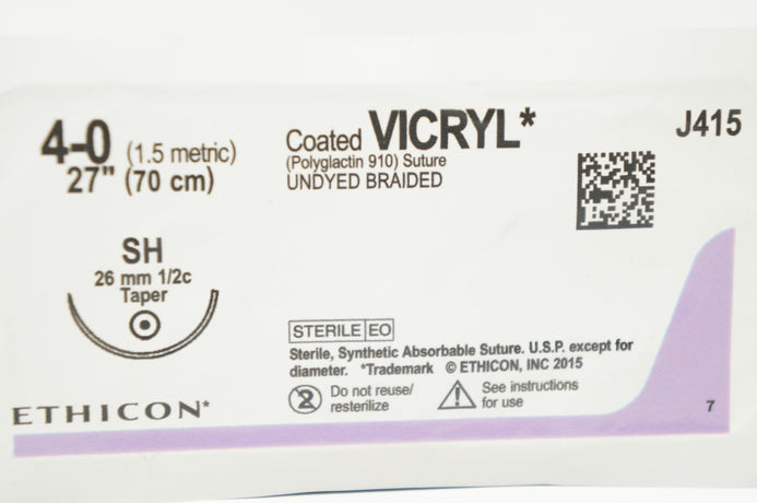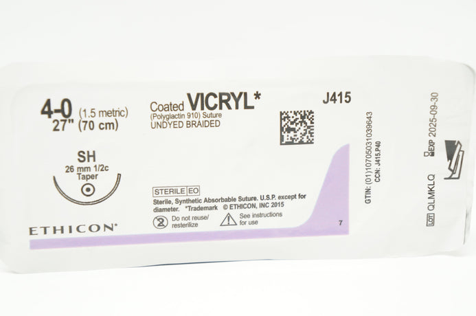- Ethicon J415 4-0 Coated Vicryl Stre Undyed Braided SH 26mm 1/2c Taper, 27inch