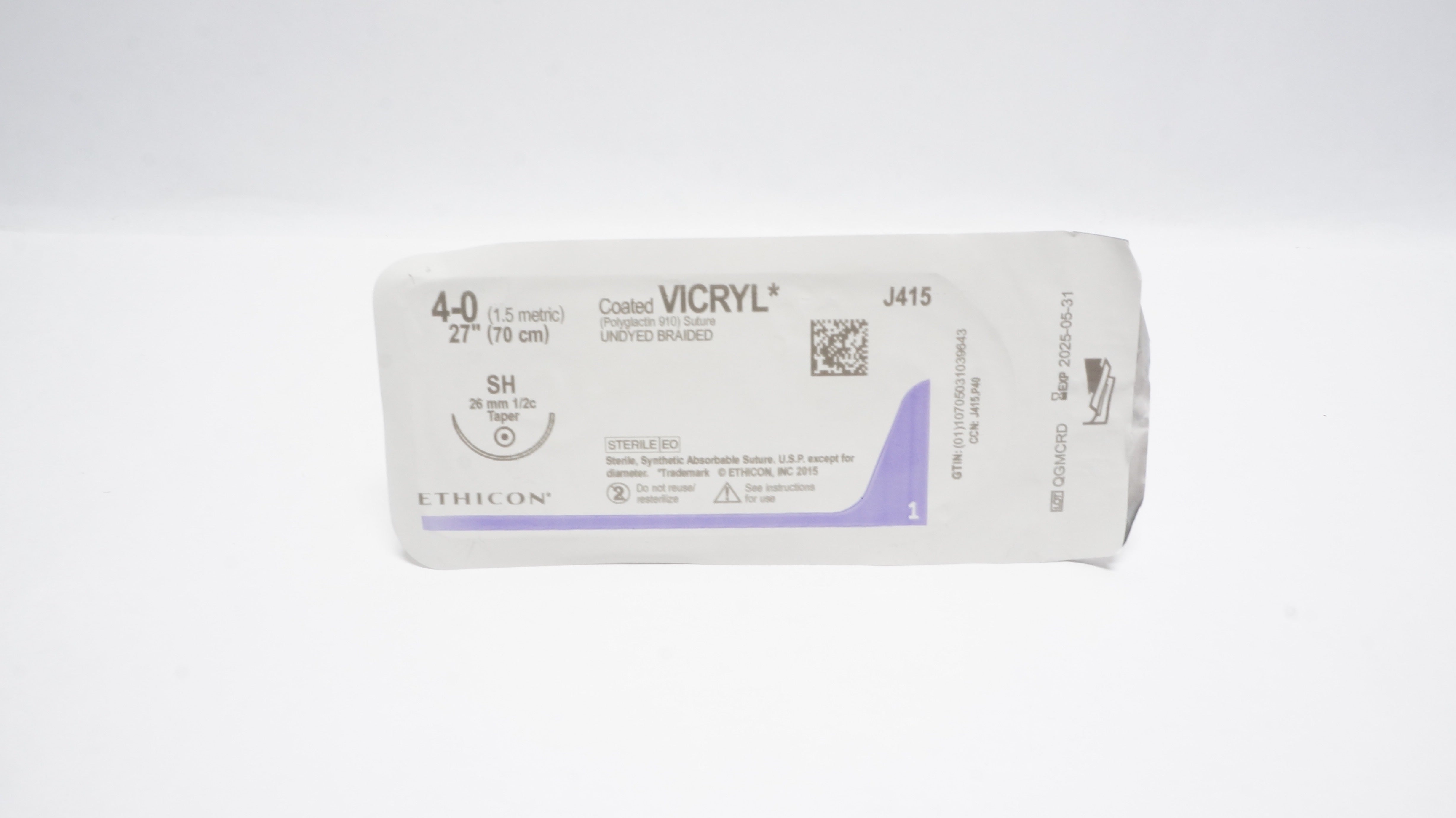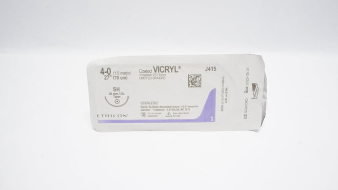 - Ethicon J415 4-0 Coated Vicryl Undyed Braided Stre SH 26mm 1/2c Taper, 27inch(x)