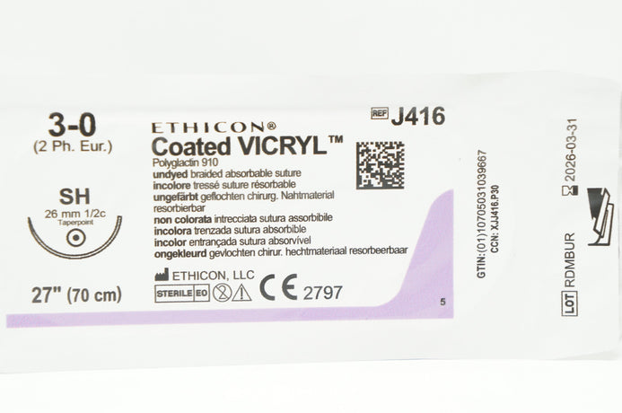 Ethicon J416 3-0 Coated VICRYL Polyglactin Stre SH 26mm 1/2c Taperpoint, 27inch