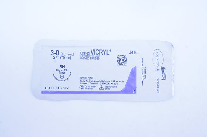 - Ethicon J416 3-0 Coated VICRYL Stre, SH 26mm 1/2c Taper, 27inch (x)