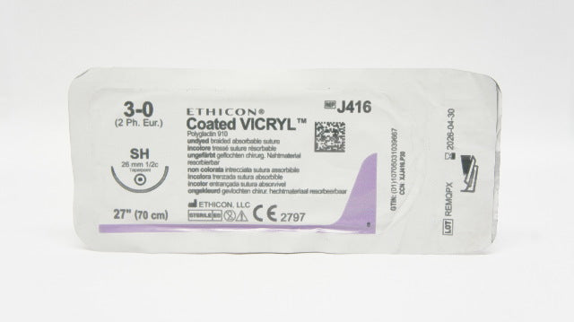 - Ethicon J416 3-0 Coated VICRYL Stre SH 26mm 1/2c Taperpoint, 27inch