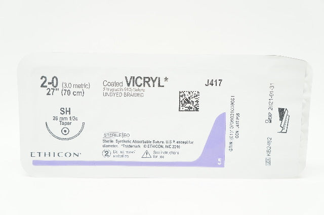 Ethicon J417 2-0 Coated VICRYL Polyglactin 910 Stre SH 26mm 1/2c Taper,27in. (x)