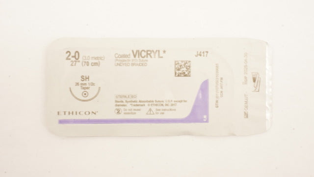 Ethicon J417 2-0 Coated VICRYL Polyglactin 910 Stre SH 26mm 1/2c Taper, 27inch