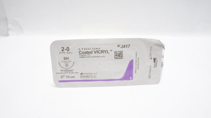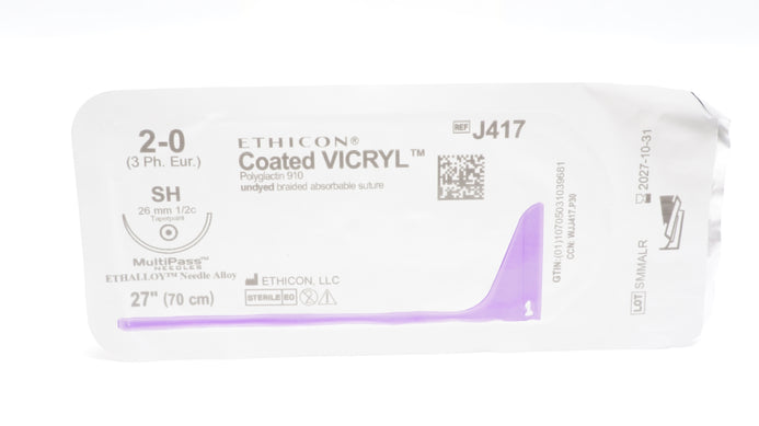 - Ethicon J417 2-0 Coated VICRYL Polyglactin 910 Stre SH 26mm 1/2c Taper, 27inch