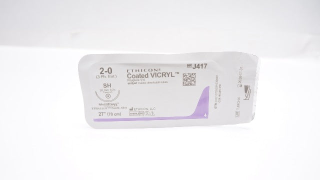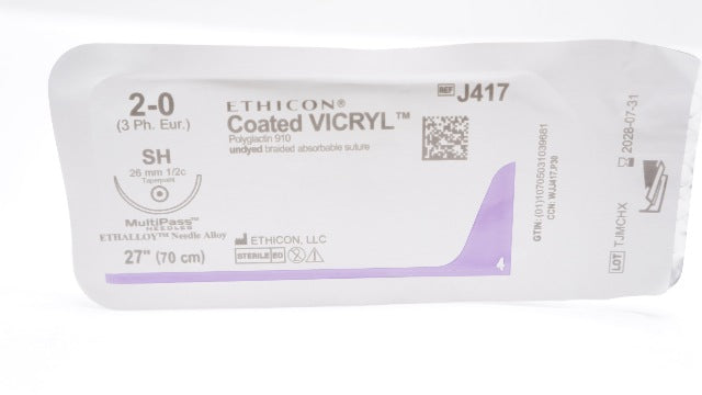 Ethicon J417 2-0 Coated VICRYL Polyglactin Stre SH 26mm 1/2c Taperpoint 27inch