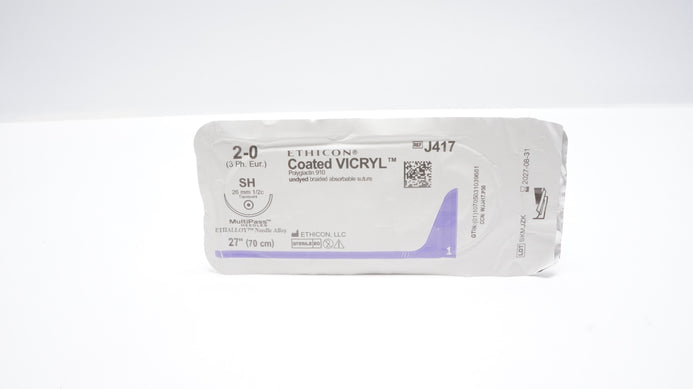 - Ethicon J417 2-0 Coated VICRYL SH 26mm 1/2c Taper 27inch