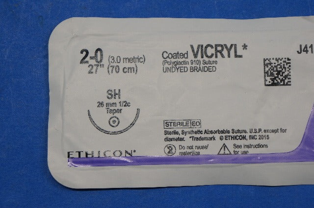 Ethicon J417 2-0 VICRYL, SH 26mm 1/2c Taper, Undyed Braided, 27