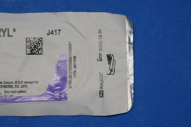 Ethicon J417 VICRYL, SH 26mm 1/2c Taper, Undyed Braided, 27", Size 2-0
