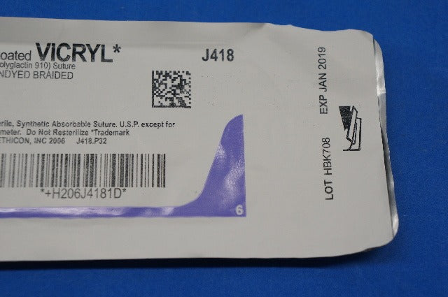 - Ethicon J418 0 VICRYL, SH 26mm 1/2c Taper, Undyed Braided, 27