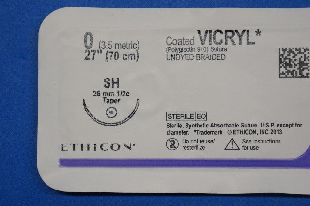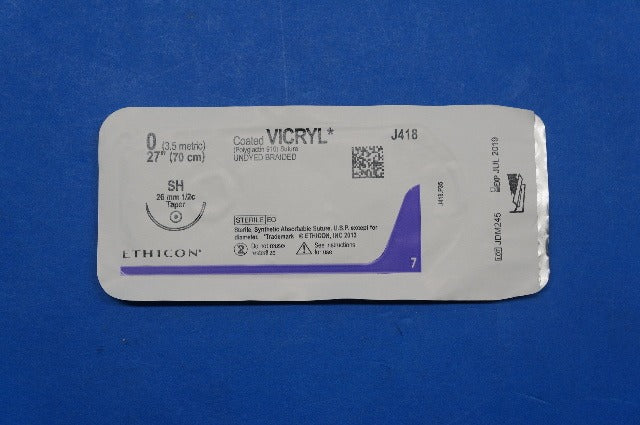 - Ethicon J418 0 VICRYL, SH 26mm 1/2c Taper, Undyed Braided, 27inch