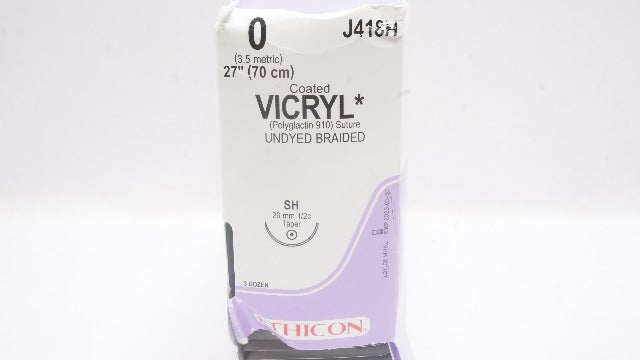 - Ethicon J418H 0 COATED VICRYL Stre, SH 26mm 1/2c Taper 27inch - Box of 36
