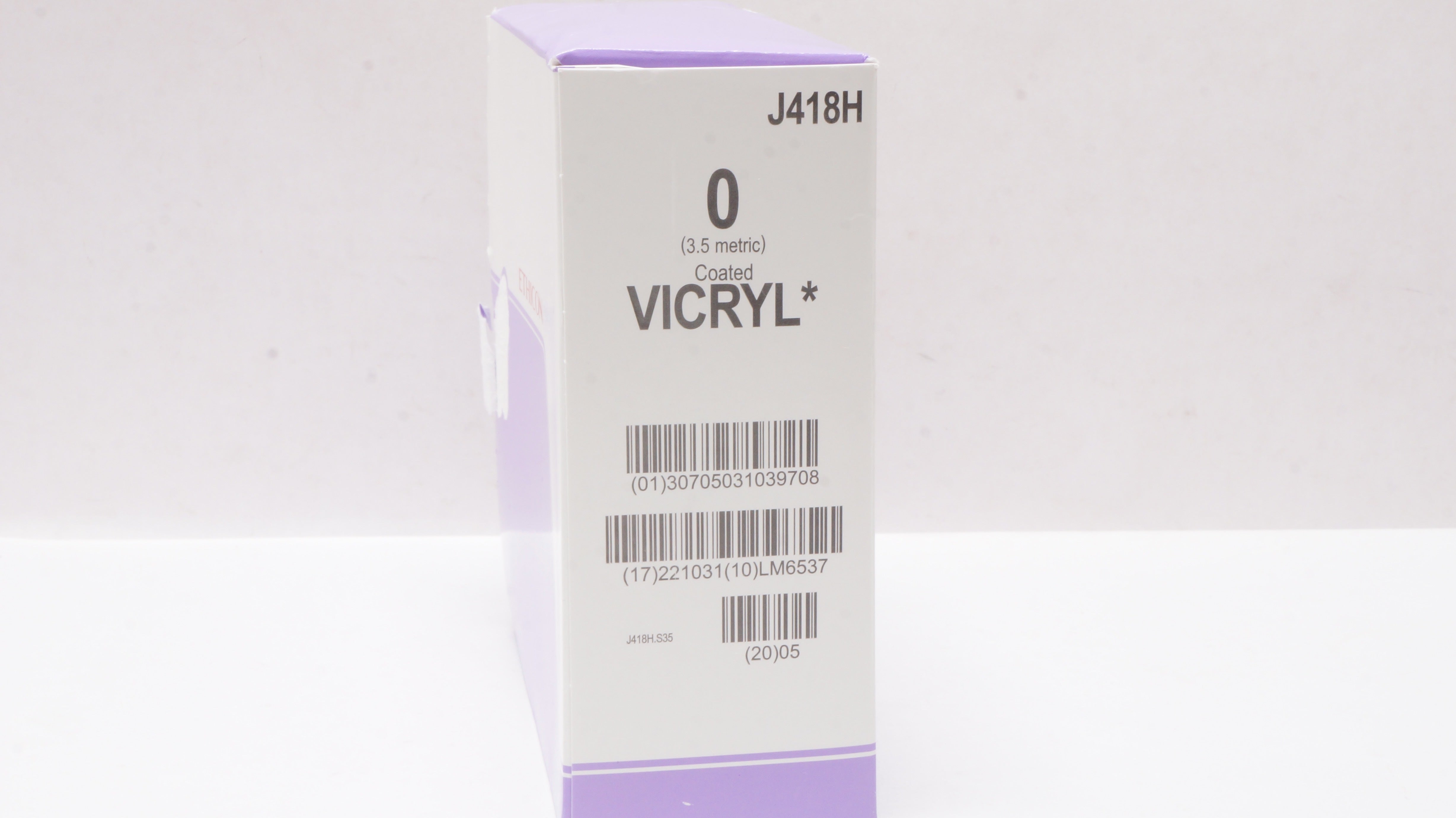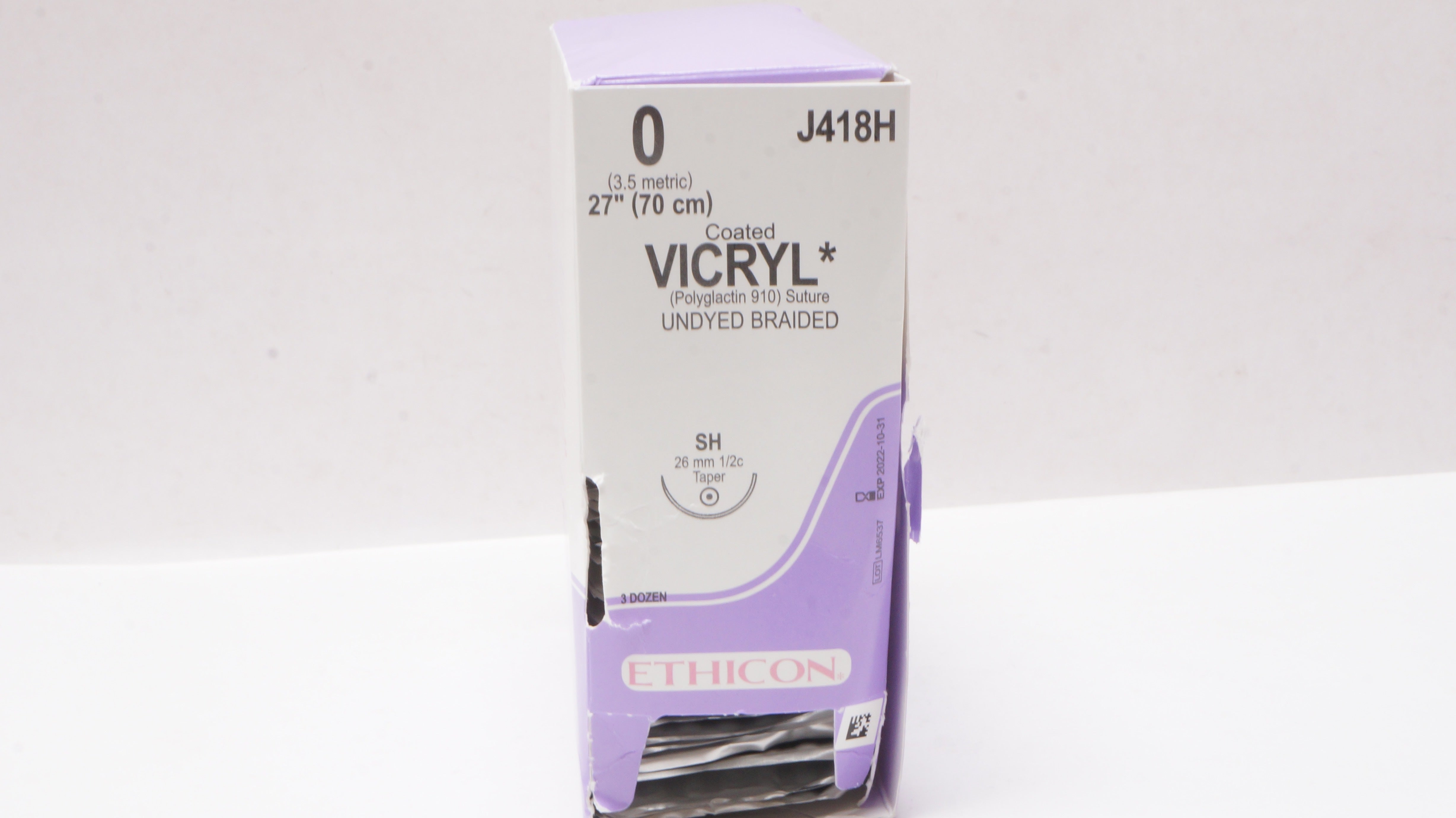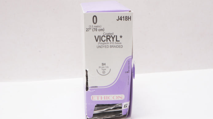Ethicon J418H 0 COATED VICRYL UNDYED 1X27inch, SH 26mm 1/2c Taper (x) -Box of 36