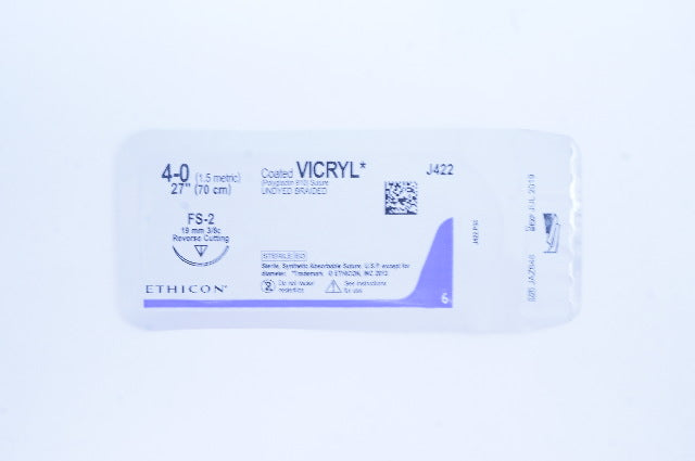 - Ethicon J422 4-0 Coated VICRYL FS-2 19mm 3/8c Reverse Cutting, 27inch (x)