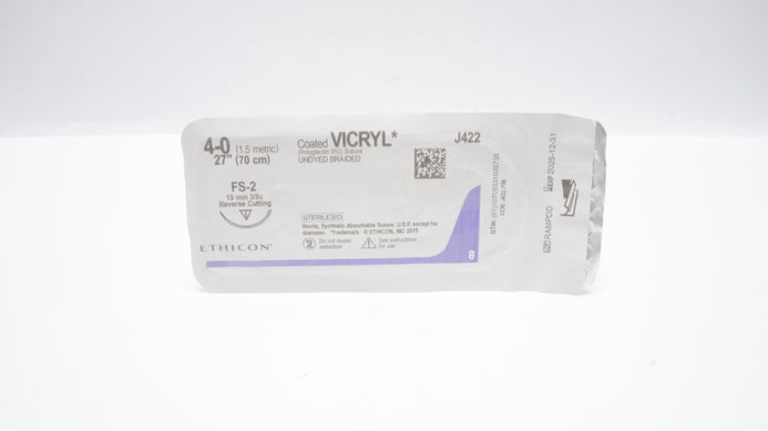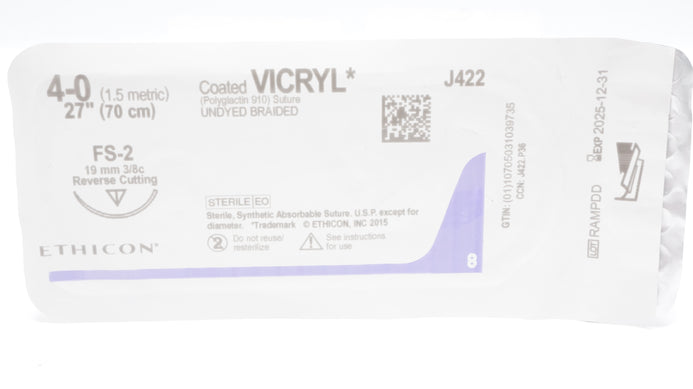 - Ethicon J422 4-0 Coated VICRYL Stre FS-2 19mm 3/8c Reverse Cutting, 27Inch