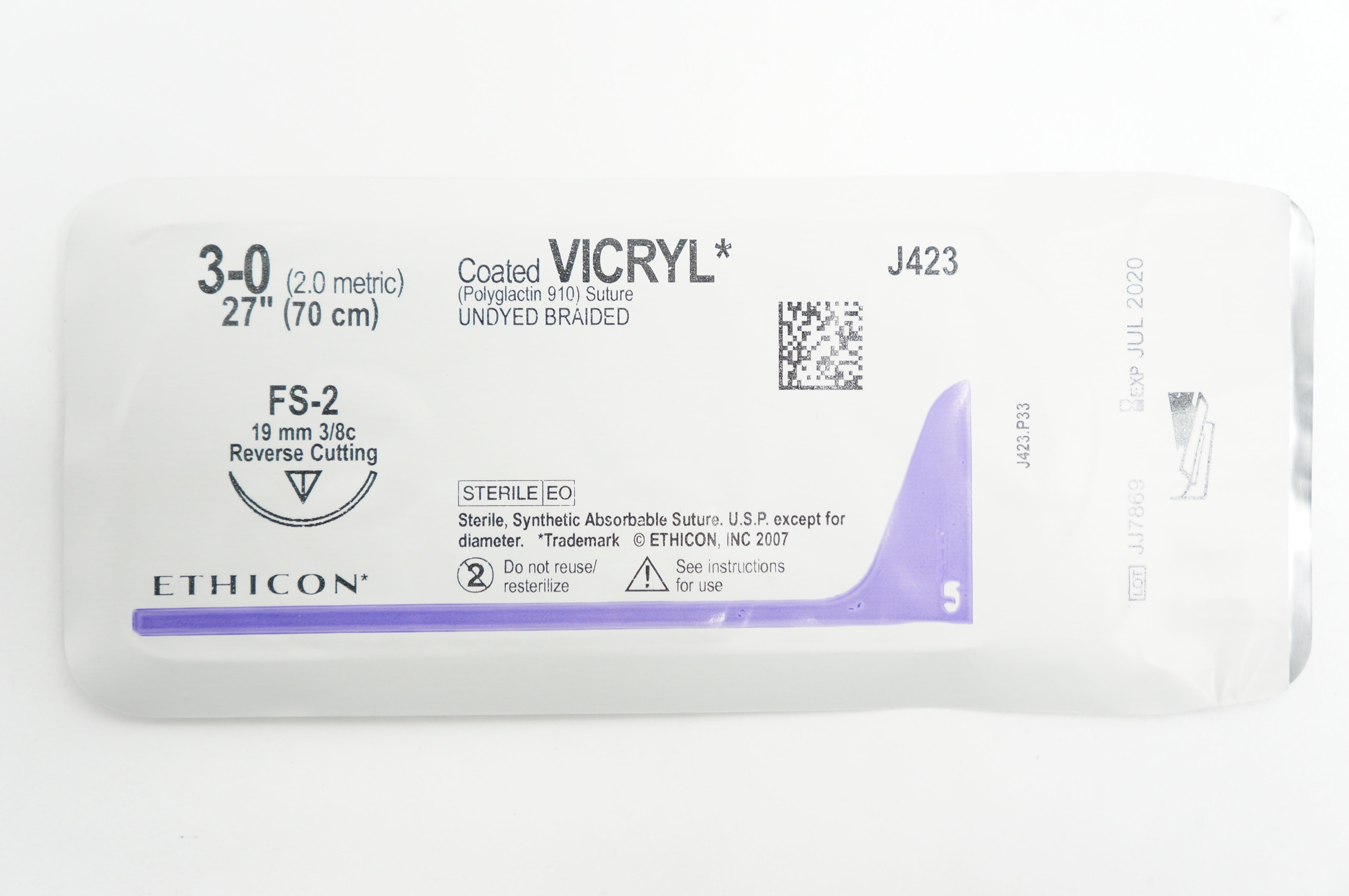 Ethicon J423 3-0 VICRYL, FS-2, 19mm 3/8c Reverse Cutting, 27inch