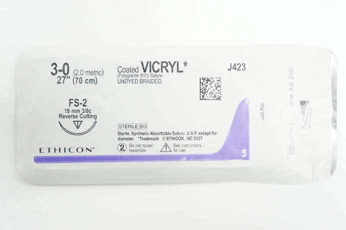 Ethicon J423 3-0 VICRYL, FS-2, 19mm 3/8c Reverse Cutting, 27inch (x)