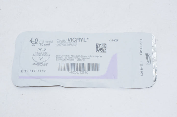 Ethicon J426 4-0 VICRYL, PS-2, 19mm 3/8c Reverse Cutting, 27inch (x)