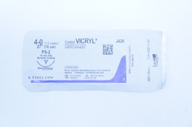 Ethicon J426 4-0 Vicryl Stre. Undyed Braided 27inch, PS-2 Reverse Cutting