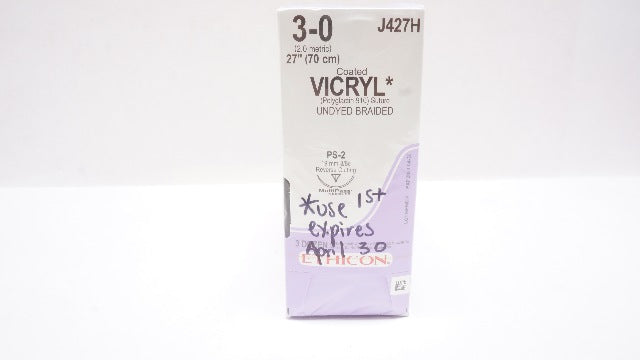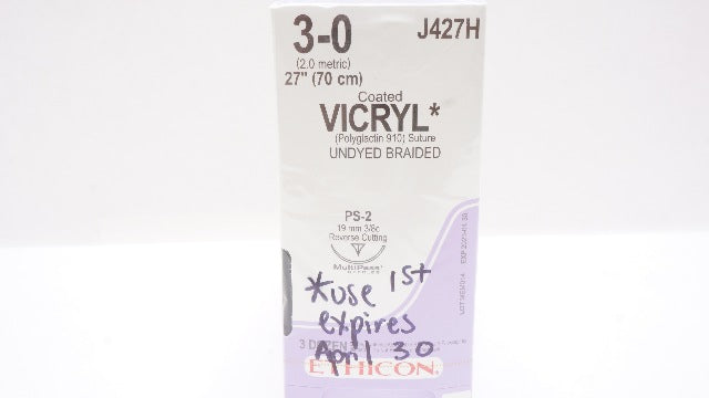 - Ethicon J427H 3-0 Vicryl Stre PS-2 19mm 3/8c Reverse Cutting 27inch(x)-Box of 36
