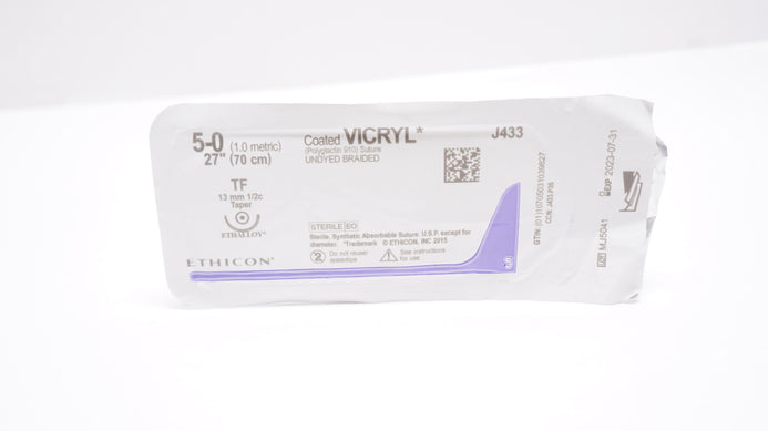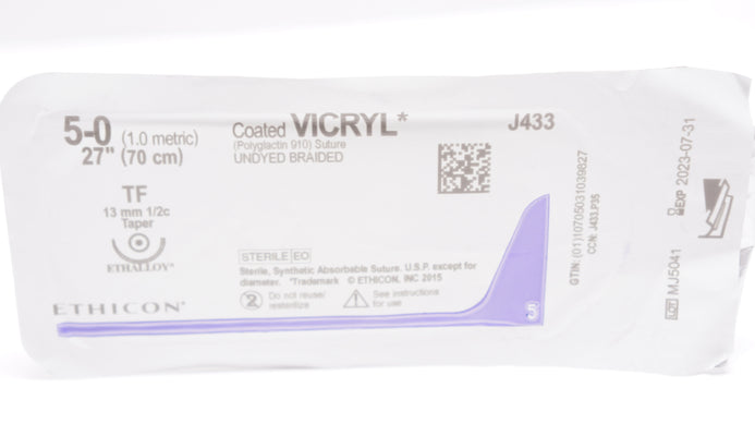- Ethicon J433 5-0 Coated VICRYL TF 13mm 1/2c Taper, 27inch (x)