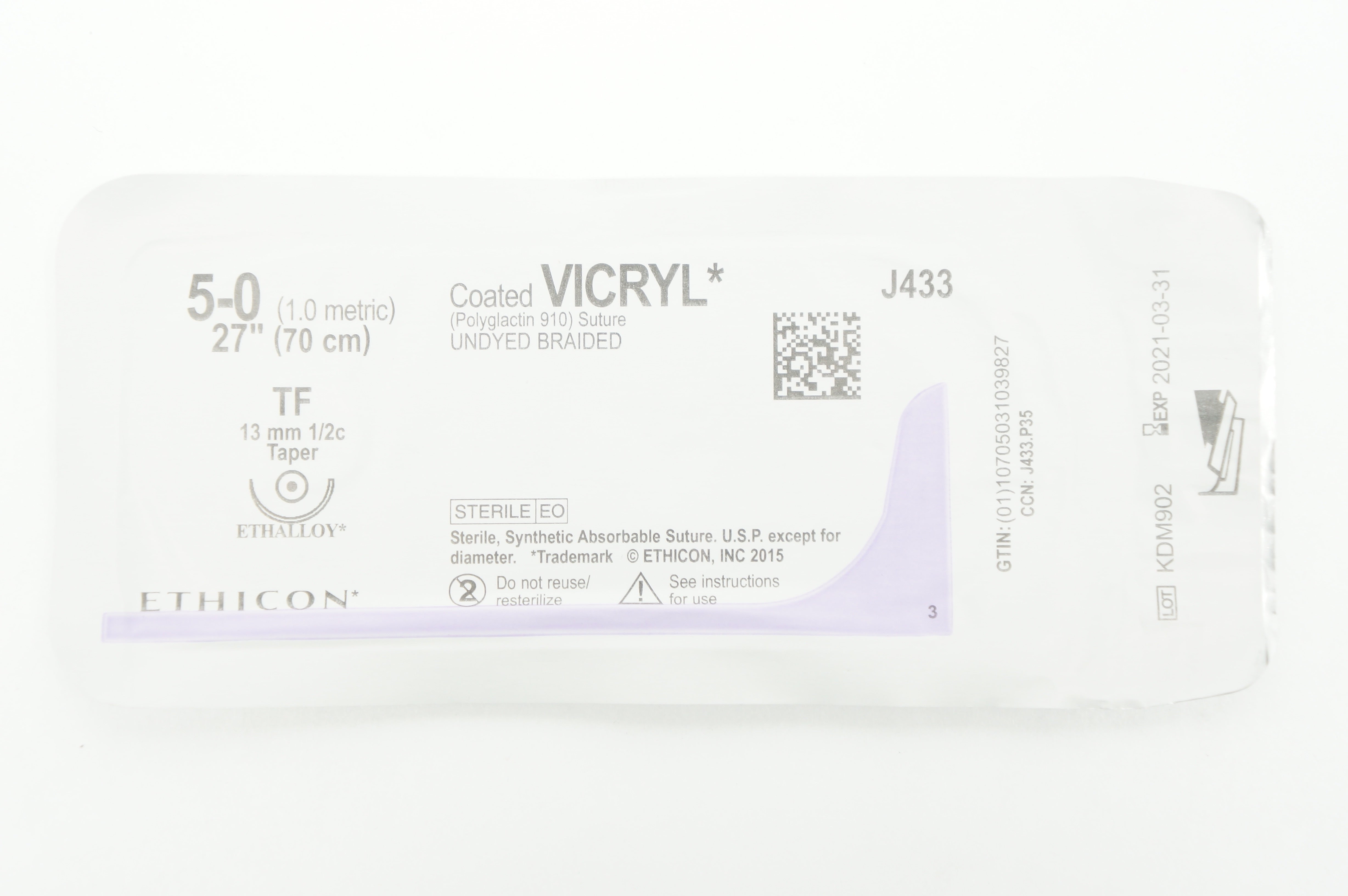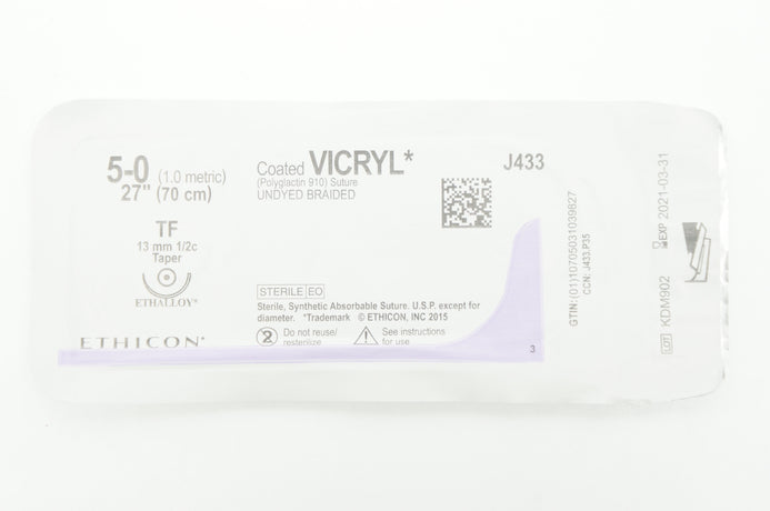 - Ethicon J433 5-0 Coated VICRYL Undyed Braided TF 13mm 1/2c Taper 27 inch (x)