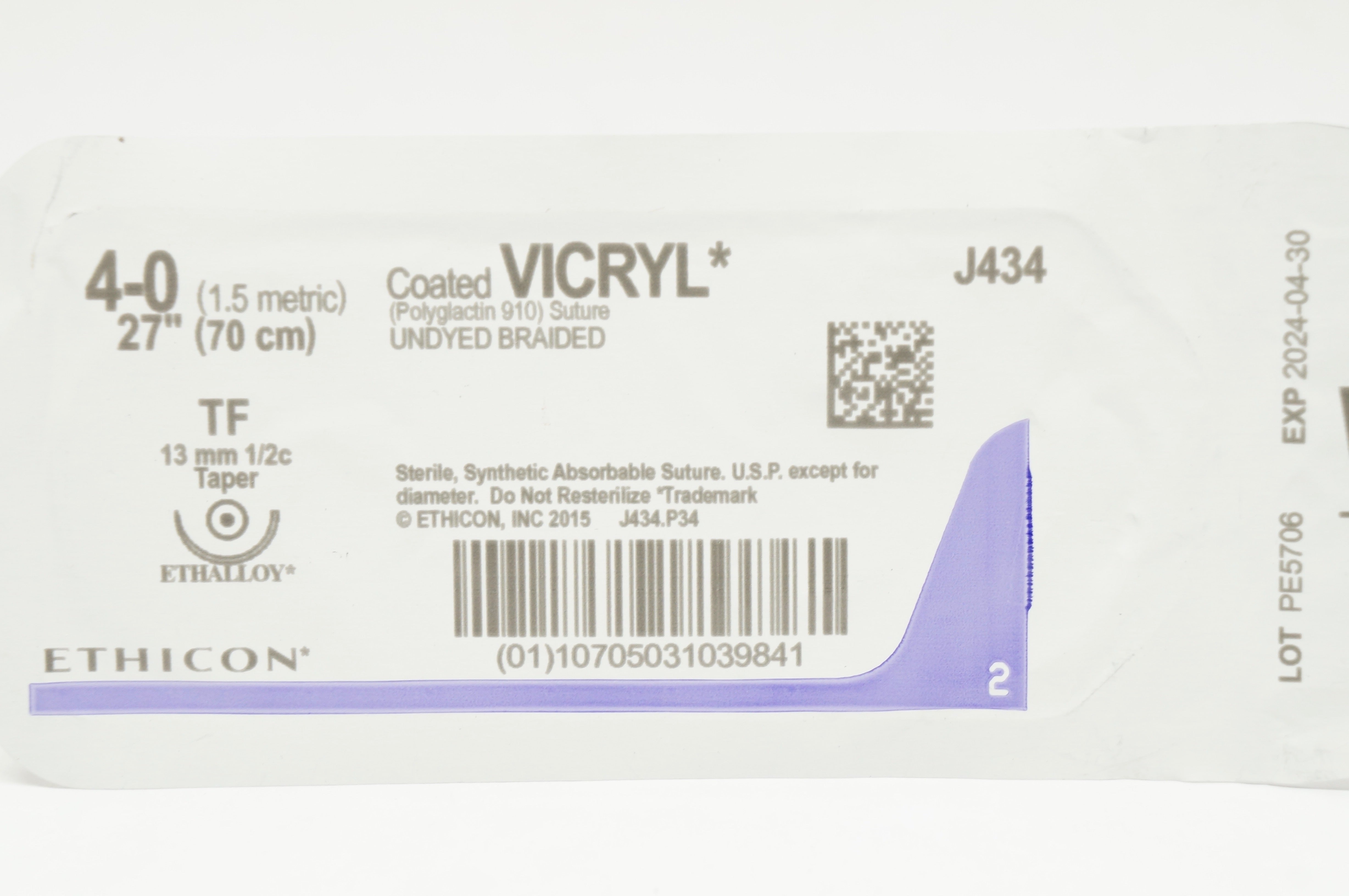 Ethicon J434 4-0 Coated VICRYL TF 13mm 1/2c Taper, 27inch
