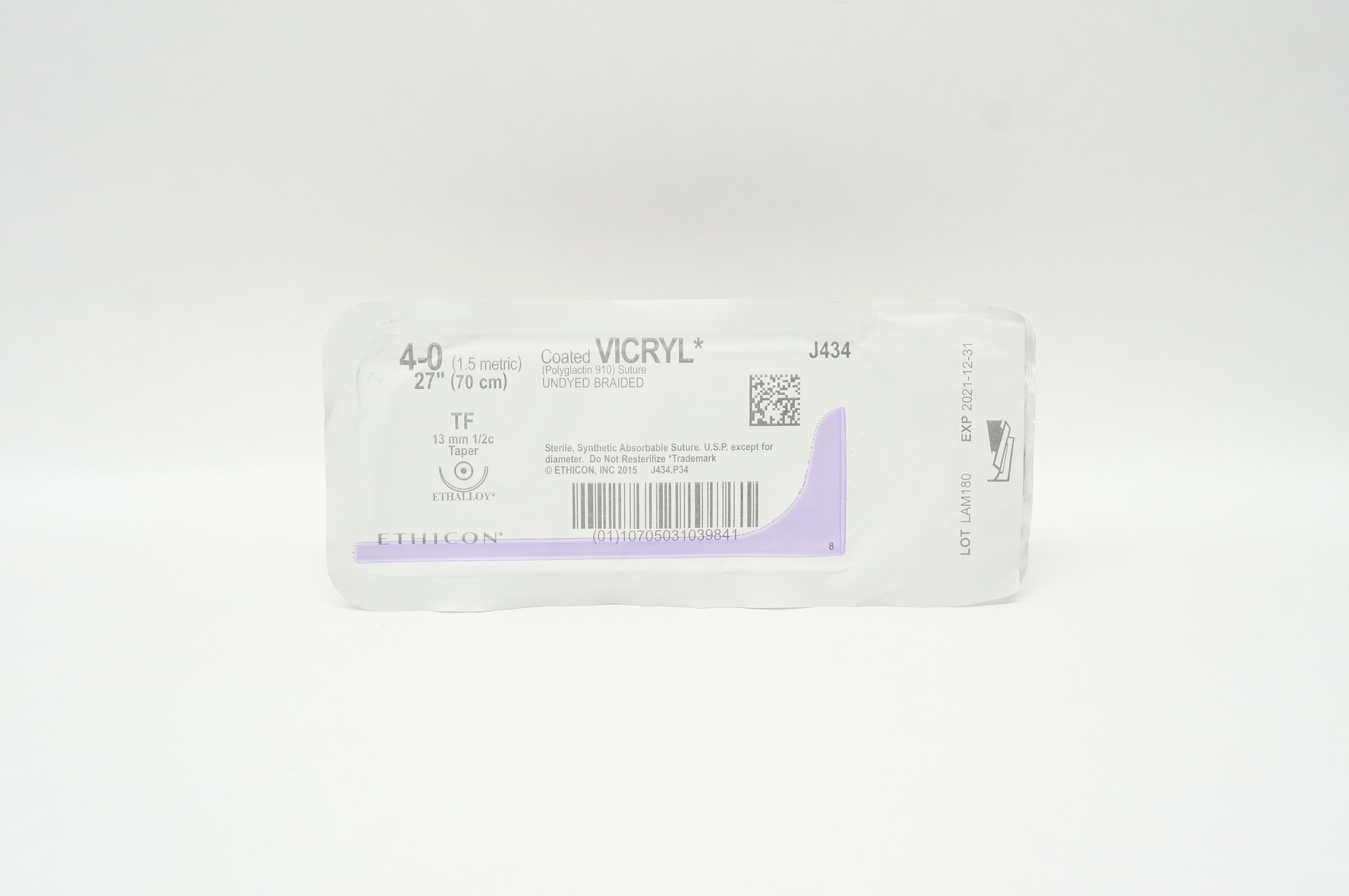 - Ethicon J434 4-0 Coated VICRYL TF 13mm 1/2c Taper, 27inch (x)