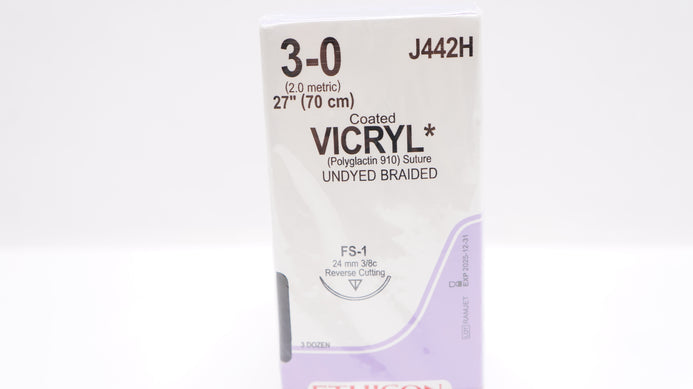 Ethicon J442H 3-0 Coated VICRYL Polyglactin 910 Suture Undyed Braided FS-1 24mm 3/8c Reverse Cutting, 27inch
