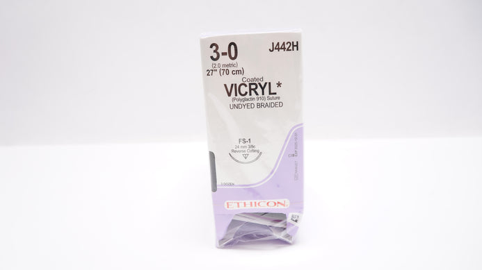 Ethicon J442H 3-0 VICRYL Stre FS-1 24mm 3/8c Reverse Cutting, 27inch - Box of 36
