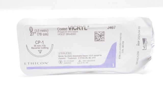 Ethicon J467 0 Coated VICRYL Stre CP-1 36mm 1/2c Reverse Cutting, 27inch (x)