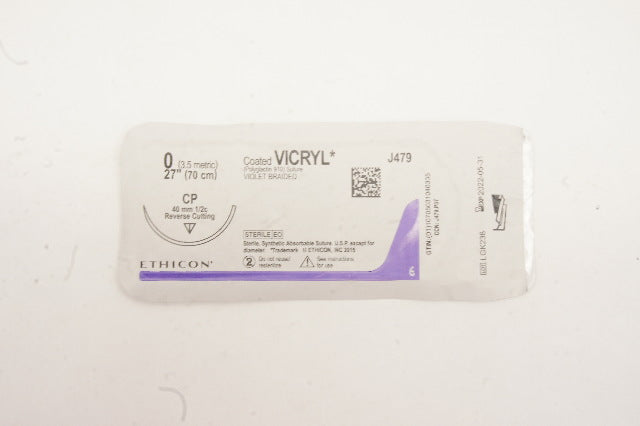 Ethicon J479 0 VICRYL, CP, 40mm 1/2c Reverse Cutting, 27inch