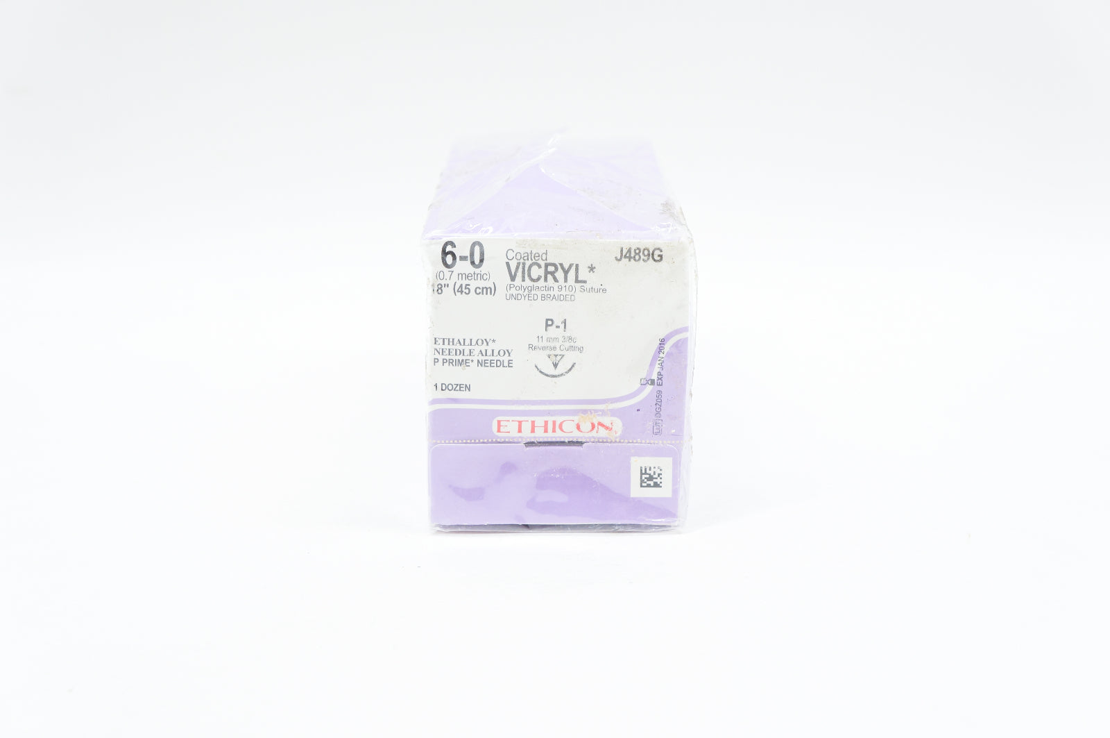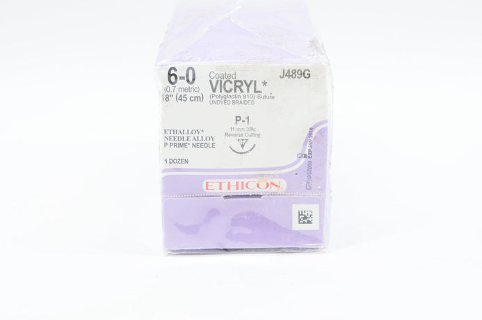 Ethicon J489G 6-0 VICRYL, P-1, 11mm 3/8c, 18inch (x) - Box of 12