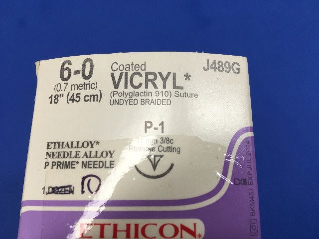 - Ethicon J489G Coated VICRYL P-1 Undyed Braided 18 -Box of 10