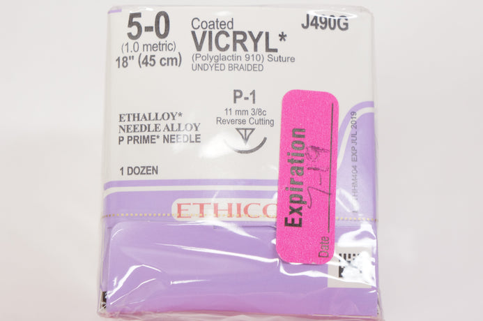 Ethicon J490G 5-0 VICRYL, P-1, 11mm 3/8c Reverse Cutting, 18inch (x) - Box of 12