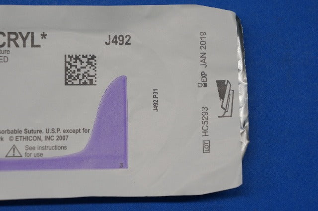 Ethicon J492 VICRYL, P-3 13mm 3/8c Reverse Cutting, Undyed Braided, 18", Size 6-0