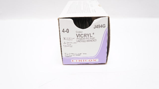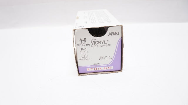 Ethicon J494G 4-0 Coated VICRYL Suture Undyed Braided P-3 13mm 3/8c Reverse Cutting 18inch