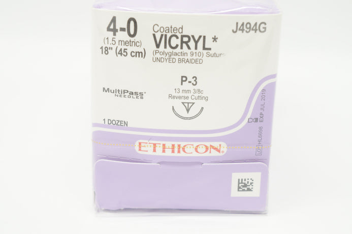 Ethicon J494G 4-0 VICRYL Stre P-3 13mm 3/8c Reverse Cutting 18inch(x) -Box of 12