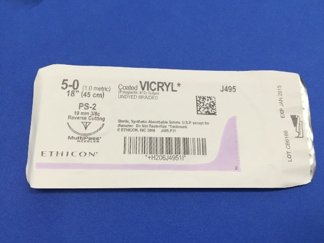 Ethicon J495 VICRYL, PS-2, Undyed Braided 18", Size 5-0