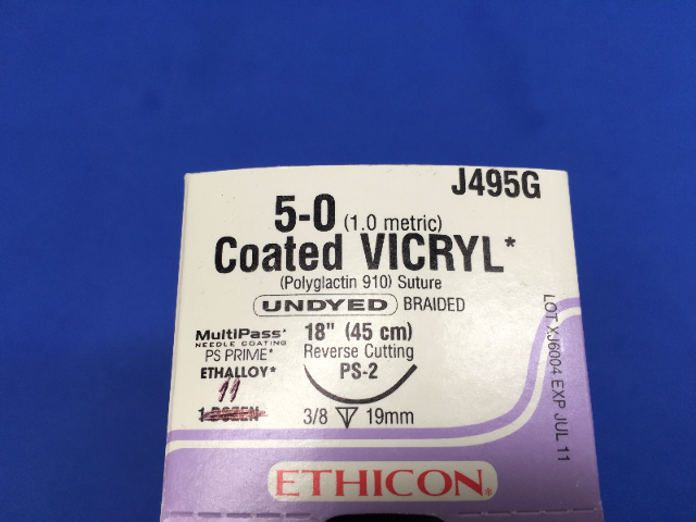 - Ethicon J495G Coated VICRYL PS-2 Undyed Braided 18 ~ Box of 11 ~ Expired