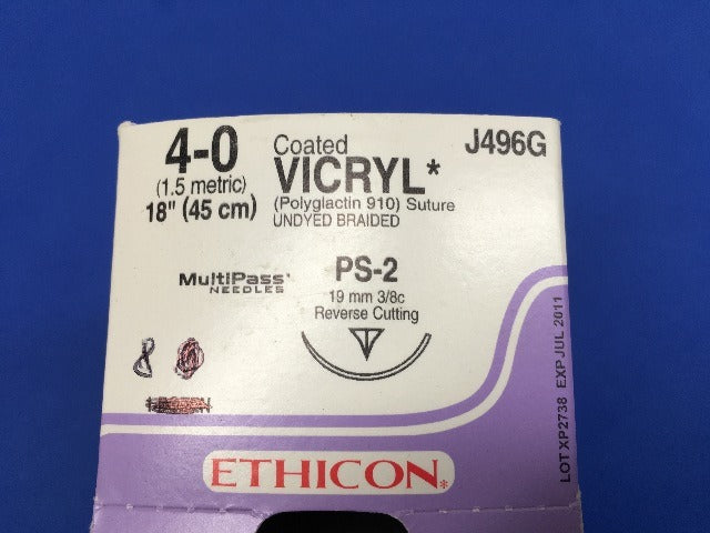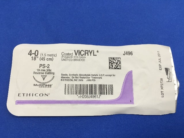- Ethicon J496G VICRYL PS-2 Undyed Braided 18 -Box of 12
