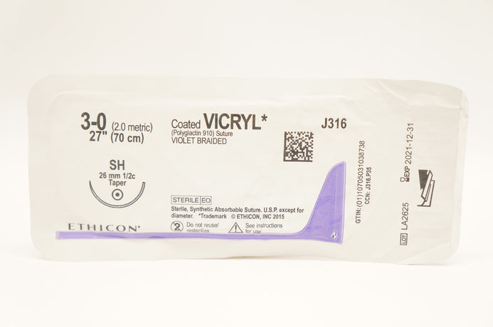 - Ethicon J497 3-0 Coated VICRYL PS-2 19mm 3/8c Reverse Cutting,18inch (x)
