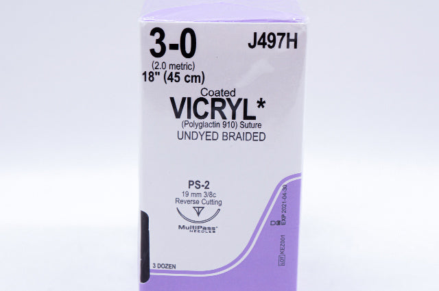 - Ethicon J497H 3-0 VICRYL, PS-2, 19mmm 3/8c, 18inch - Box of 36