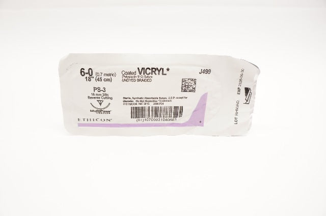Ethicon J499 6-0 Coated Vicryl Undyed Braided PS-3 16mm 3/8c Reverse Cutting 18in