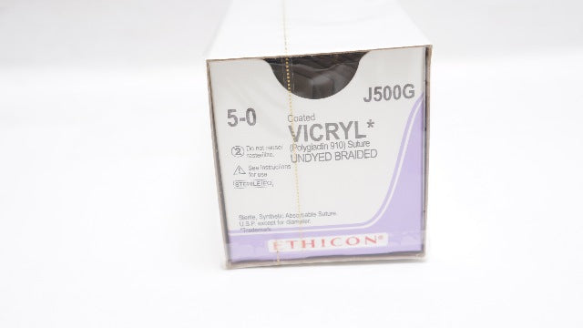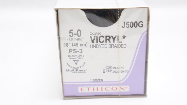 Ethicon J500G 5-0 Coated VICRYL Polyglactin 910 Suture Undyed Braided PS-3 16mm 3/8c Reverse Cutting 18inch