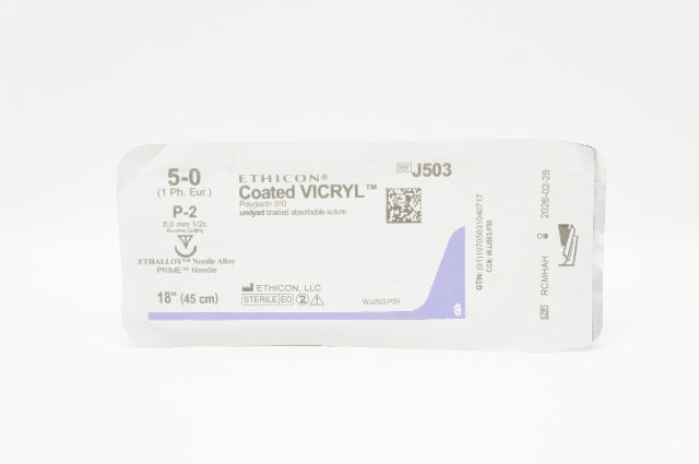 Ethicon J503 5-0 Coated VICRYL Stre P-2 8.0mm 1/2c Reverse Cutting, 18inch